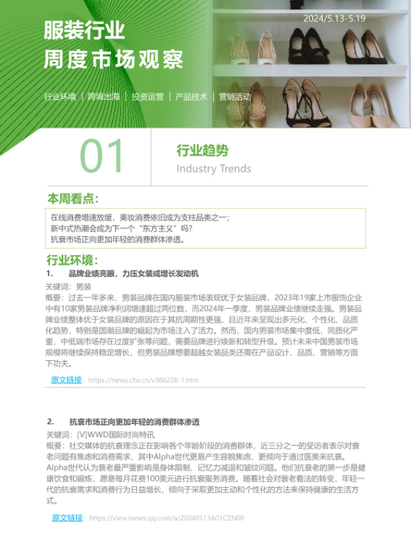 【艾瑞咨询】【20240519】2024年第21周-服饰行业周度市场观察-7页 行业研究