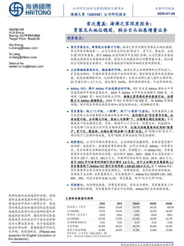【海通国际】【20250124】海澜之家深度报告:男装龙头地位稳固,联合巨头拓展增量业务-33页 行业研究