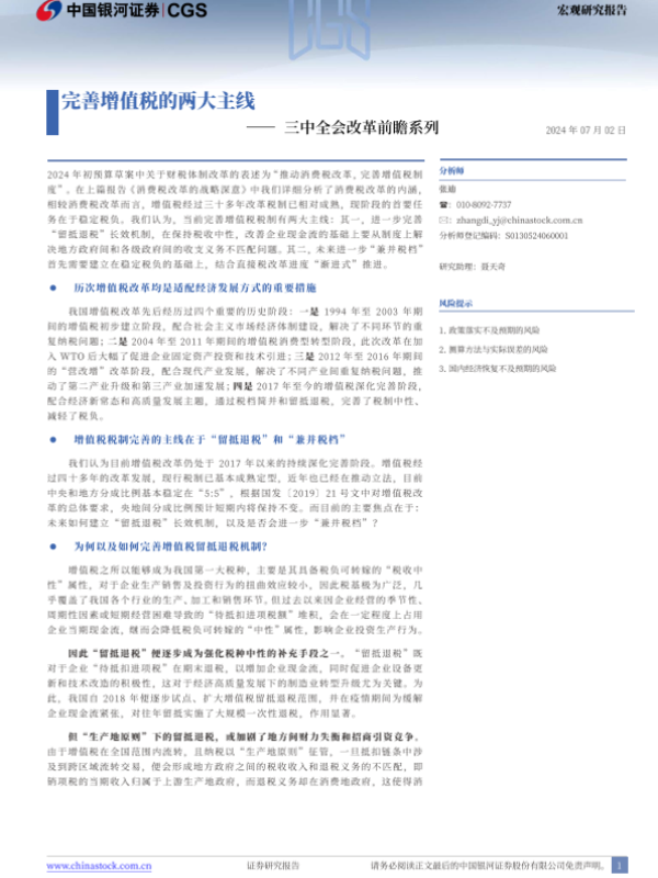 【银河证券】【20240702】三中全会改革前瞻系列:完善增值税的两大主线-13页 行业研究