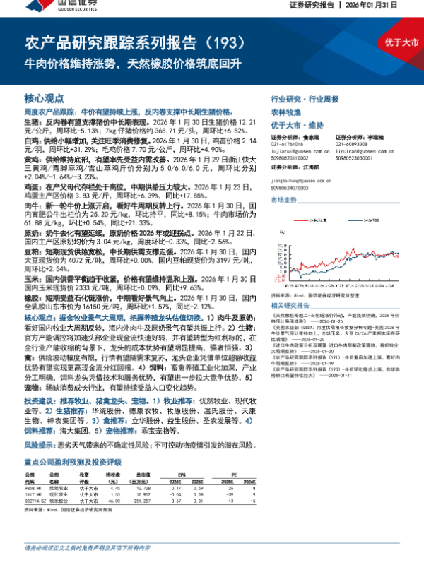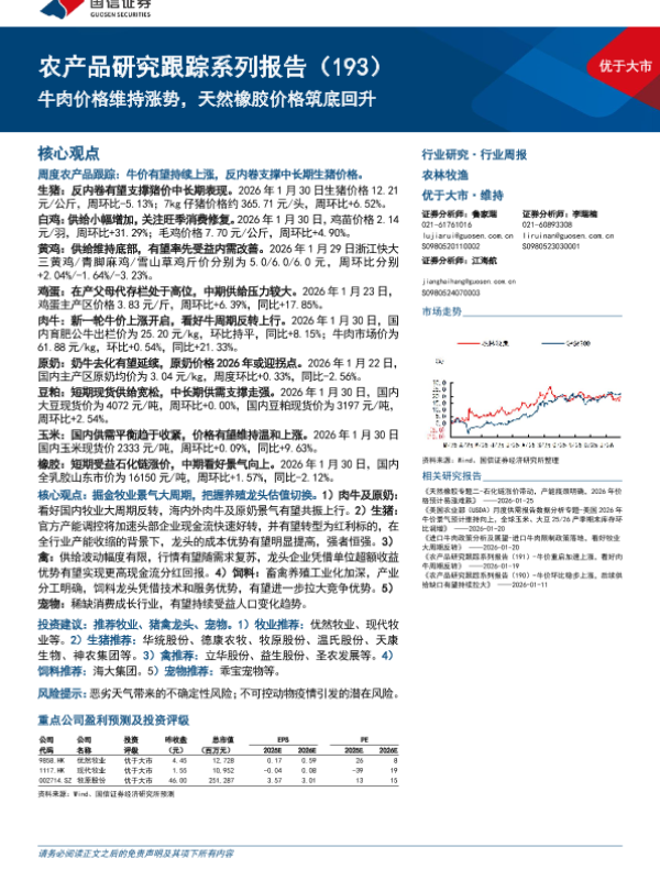 【国信证券】【202601】牛肉价格维持涨势,天然橡胶价格筑底回升-27页 证券期货研究报告