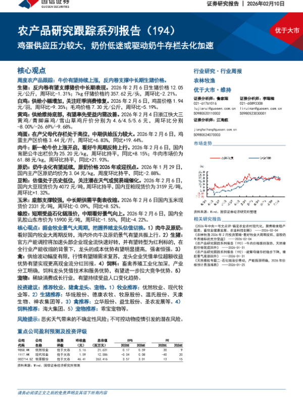 【国信证券】【202602】鸡蛋供应压力较大,奶价低迷或驱动奶牛存栏去化加速-27页 证券期货研究报告
