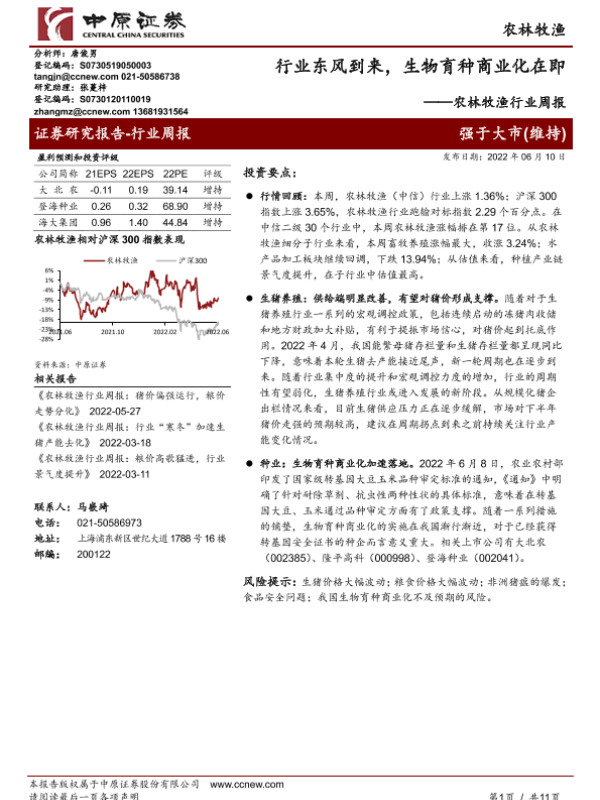 【中原证券】【20220610】农林牧渔行业周报:行业东风到来,生物育种商业化在即-11页 行业研究