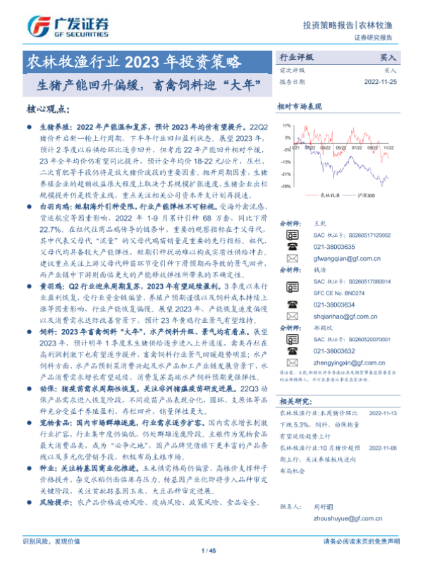 【广发证券】【20221125】农林牧渔行业2023年投资策略:生猪产能回升偏缓,畜禽饲料迎“大年”-45页 行业研究