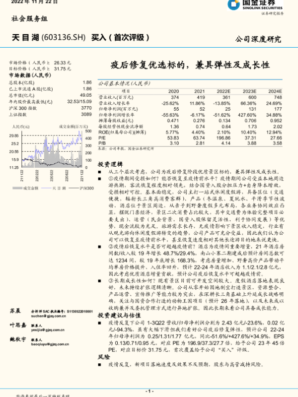 【国金证券】【20221122】20221122-国金证券-天目湖-603136.SH-疫后修复优选标的,兼具弹性及成长性-24页 行业研究