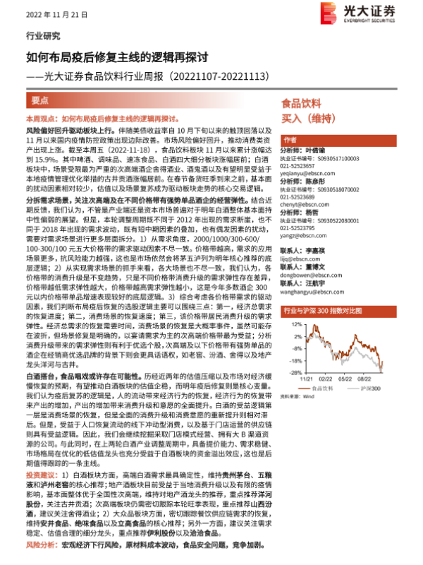 【光大证券】【20221121】20221121-光大证券-食品饮料行业周报:如何布局疫后修复主线的逻辑再探讨-11页 行业研究