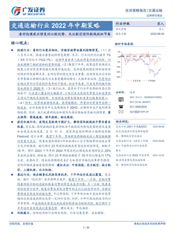 【广发证券】【20220625】交通运输行业2022年中期策略-45页 行业研究