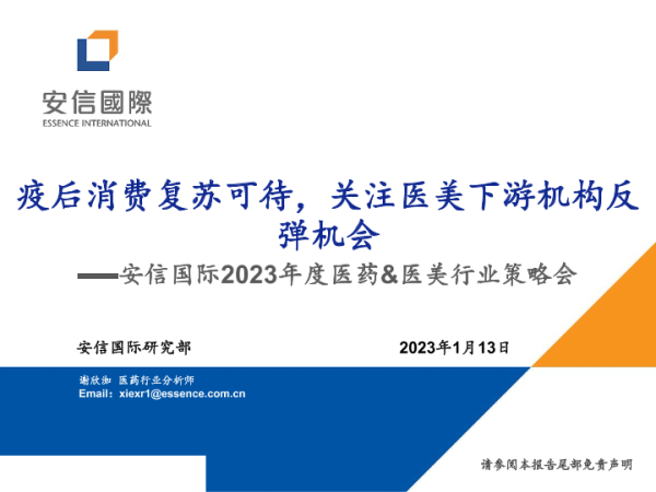 【国证国际】【20230113】2023年度医药&医美行业策略会:疫后消费复苏可待,关注医美下游机构反弹机会-23页 行业研究