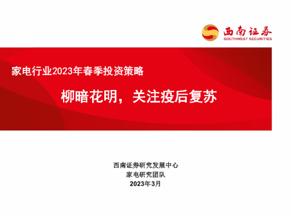 【西南证券】【202303】2023年春季投资策略:柳暗花明,关注疫后复苏-33页 行业研究