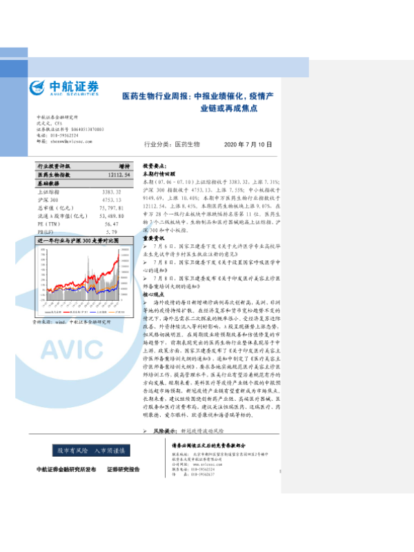 【中航证券】【20200710】医药生物行业周报:中报业绩催化,疫情产业链或再成焦点-8页 行业研究