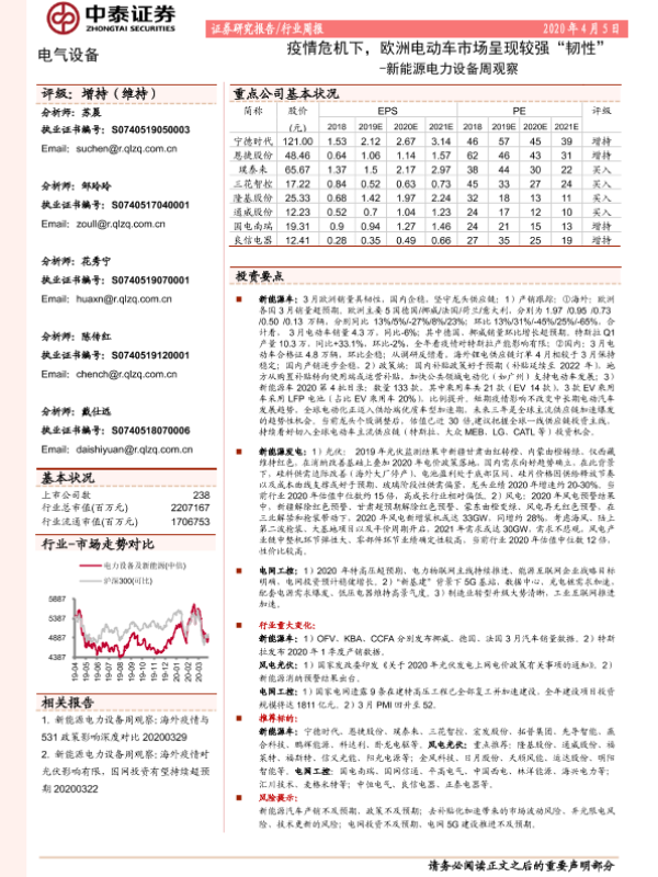 【中泰证券】【20200405】20200405-中泰证券-新能源电力设备周观察:疫情危机下,欧洲电动车市场呈现较强“韧性”-20页 行业研究