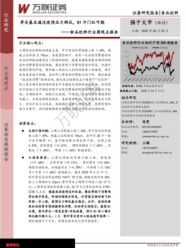 【万联证券】【20200420】20200420-万联证券-食品饮料行业周观点报告:茅台基本通过疫情压力测试,Q1开门红可期-15页 行业研究