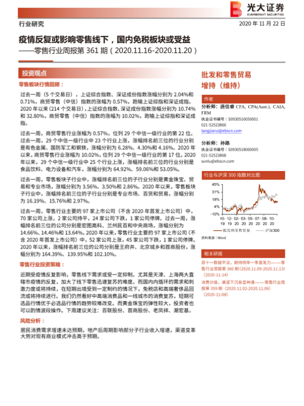 【光大证券】【20201122】疫情反复或影响零售线下,国内免税板块或受益-10页 行业研究