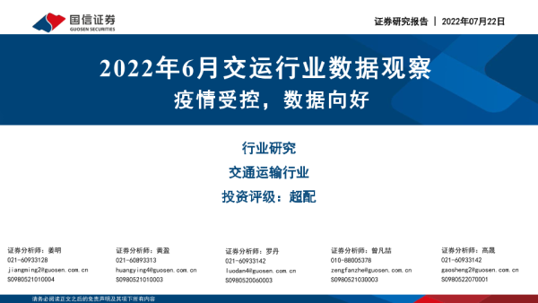 【国信证券】【20220722】2022年6月交运行业数据观察:疫情受控,数据向好-19页 行业研究