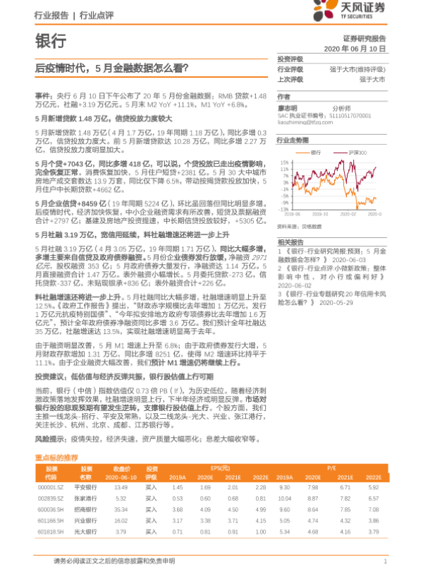 【天风证券】【20200610】后疫情时代,5月金融数据怎么看?-5页 行业研究