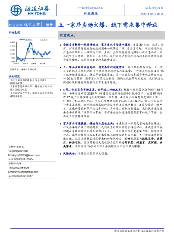 【海通证券】【20200506】20200506-海通证券-造纸轻工行业周报:五一家居卖场火爆,线下需求集中释放-5页 行业研究