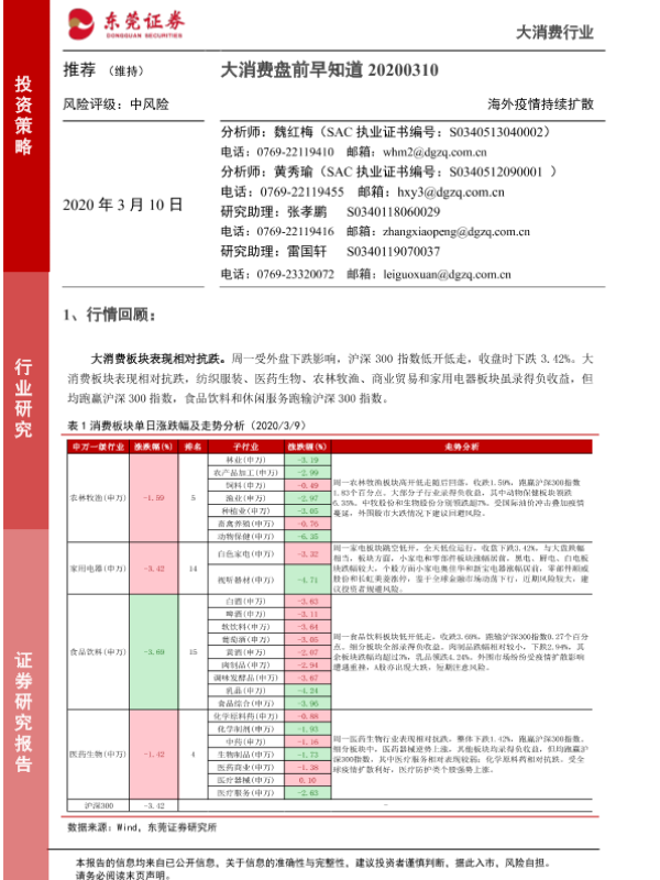 【东莞证券】【20200310】大消费盘前早知道-5页 行业研究