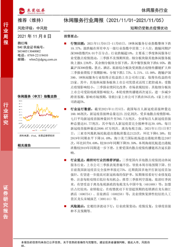 【东莞证券】【20211108】休闲服务行业周报:短期仍受散点疫情扰动-9页 行业研究