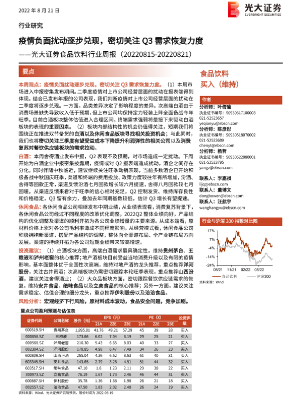 【光大证券】【20220821】20220821-光大证券-食品饮料行业周报:疫情负面扰动逐步兑现,密切关注Q3需求恢复力度-10页 行业研究
