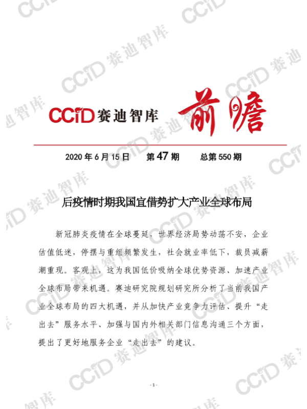 【赛迪研究院规划研究所】【20200615】后疫情时期我国宜借势扩大产业全球布局-8页 宏观策略
