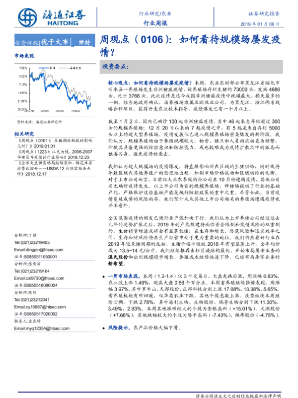 【海通证券】【20190106】20190106-海通证券-农业行业周观点:如何看待规模场屡发疫情?-5页 行业研究