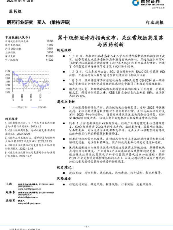 【国金证券】【20230108】第十版新冠诊疗指南发布,关注常规医药复苏与医药创新-18页 行业研究