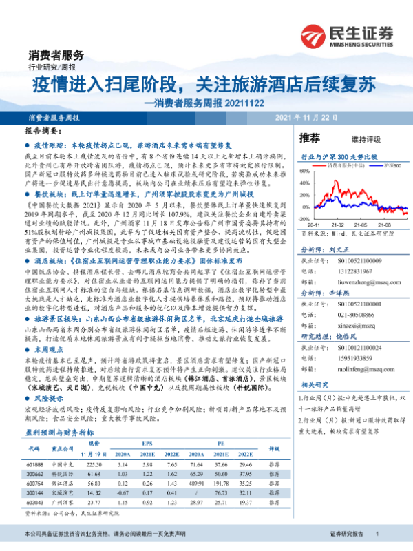 【民生证券】【20211122】消费者服务周报:疫情进入扫尾阶段,关注旅游酒店后续复苏-25页 行业研究