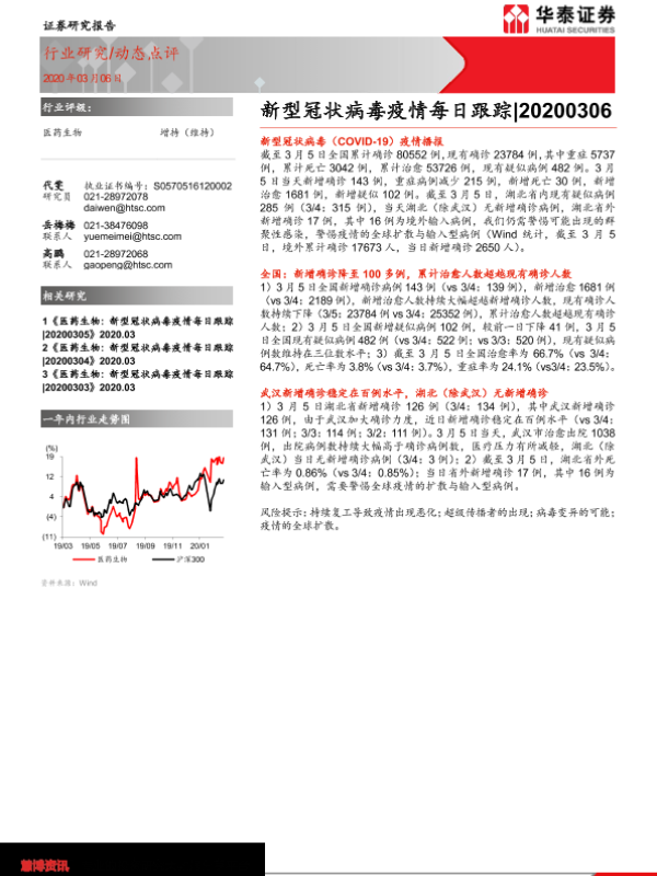 【华泰证券】【20200306】医药生物:新型冠状病毒疫情每日跟踪-4页 行业研究