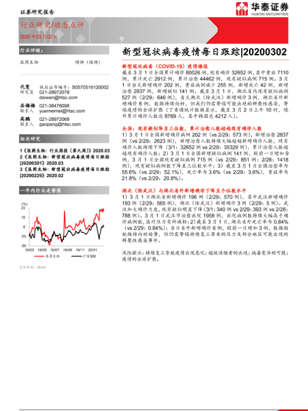 【华泰证券】【20200302】医药生物 新型冠状病毒疫情每日跟踪-4页 行业研究
