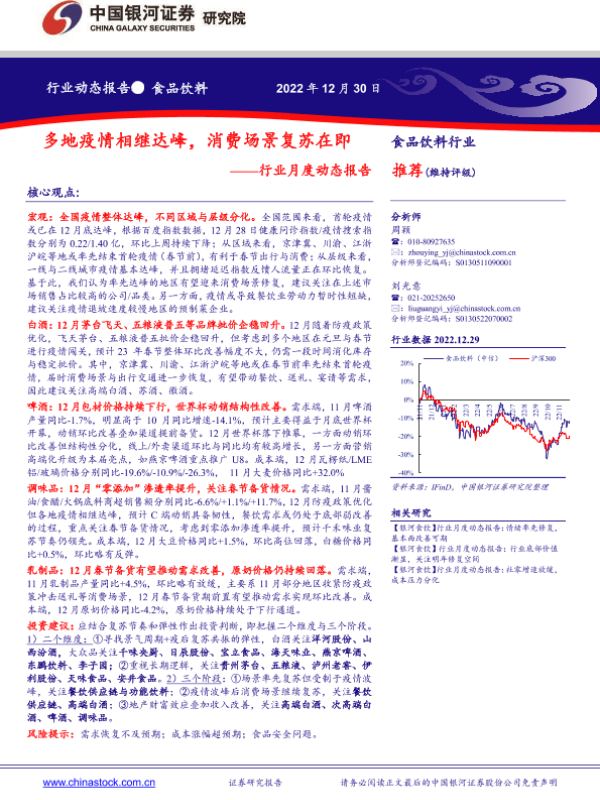 【银河证券】【20221230】20221230-中国银河-食品饮料行业月度动态报告:多地疫情相继达峰,消费场景复苏在即-21页 行业研究
