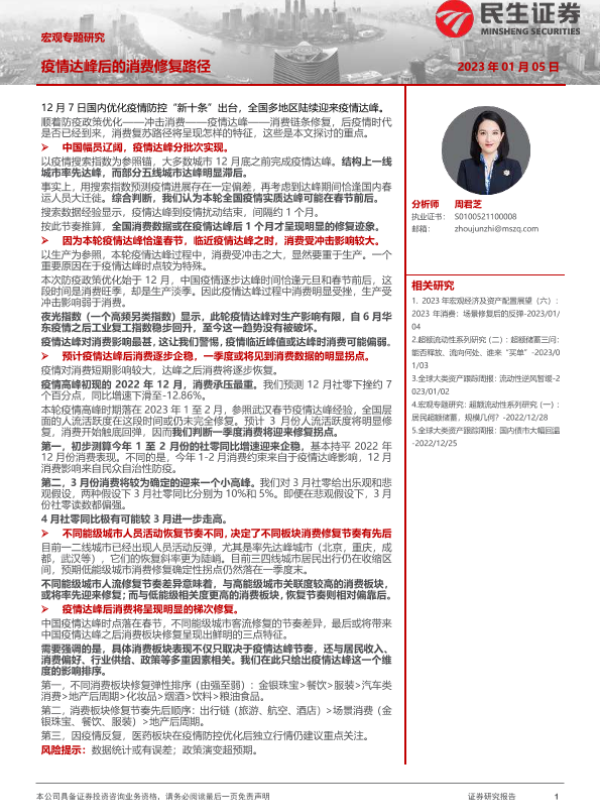 【民生证券】【20230105】疫情达峰后的消费修复路径-17页 行业研究