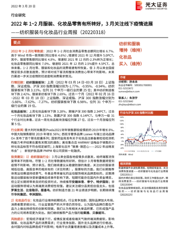 【光大证券】【20220320】2022年1~2月服装、化妆品零售有所转好,3月关注线下疫情进展-11页 行业研究