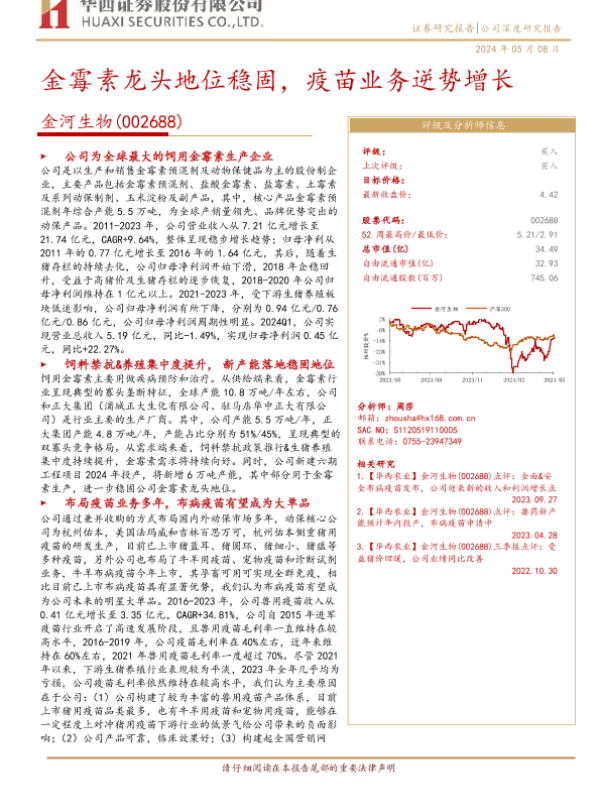 【华西证券】【20240508】金河生物(002688)金霉素龙头地位稳固,疫苗业务逆势增长-23页 行业研究
