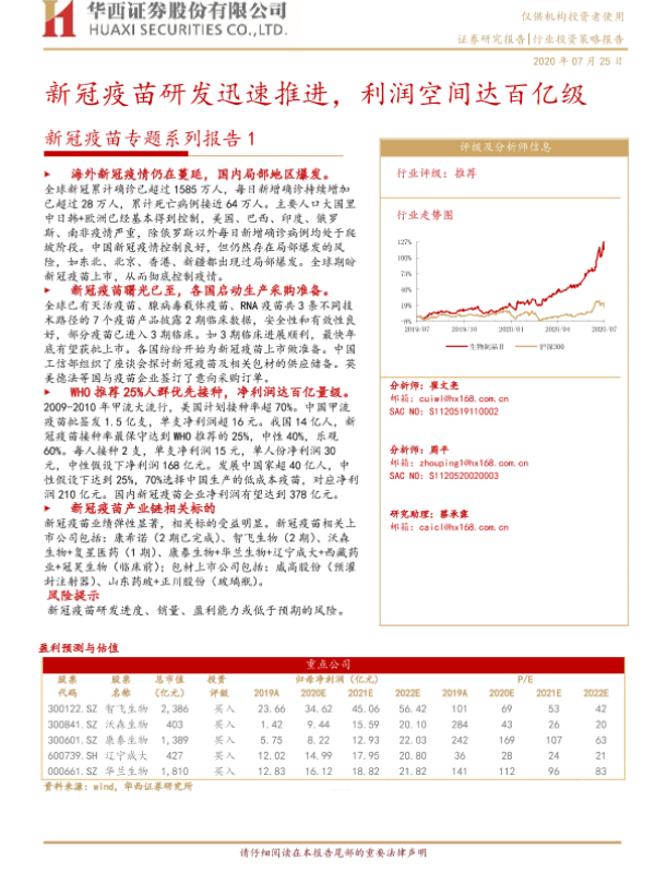 【华西证券】【20200725】新冠疫苗研发迅速推进,利润空间达百亿级-17页 行业研究