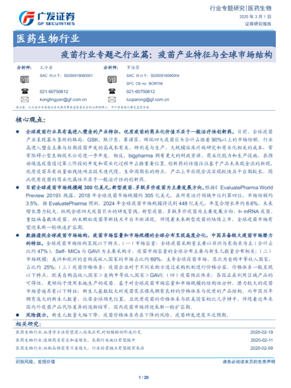 【广发证券】【20200301】疫苗行业专题之行业篇:疫苗产业特征与全球市场结构-29页 行业研究