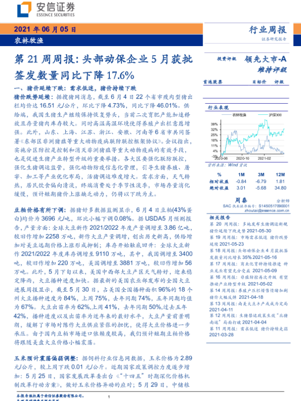 【安信证券】【20210605】农林牧渔第21周周报:头部动保企业5月获批签发数量同比下降17.6%-18页 行业研究