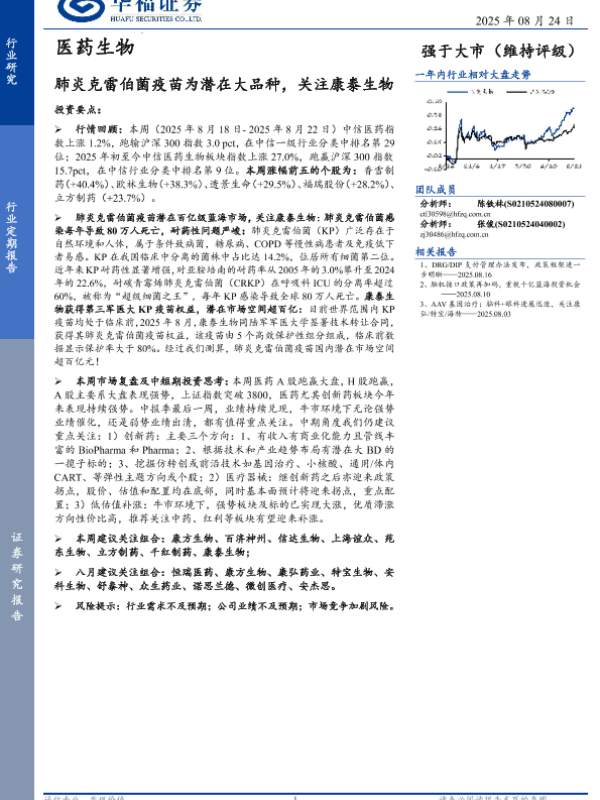 【华福证券】【202508】医药生物行业定期报告:肺炎克雷伯菌疫苗为潜在大品种,关注康泰生物-13页 证券期货研究报告
