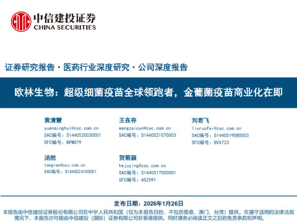 【中信建投证券】【202601】欧林生物:超级细菌疫苗全球领跑者,金葡菌疫苗商业化在即-58页 证券期货研究报告