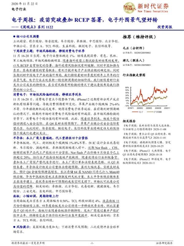 【新时代证券】【20201122】电子周报:疫苗突破叠加RCEP签署,电子外围景气望好转-17页 行业研究