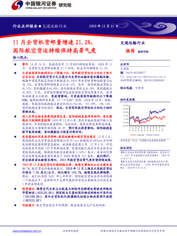【银河证券】【20201221】11月全货机货邮量增速21.2%,国际航空货运持续保持高景气度-2页 行业研究