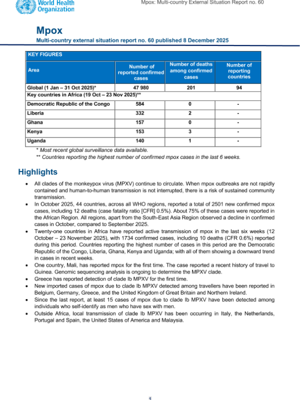 【世界卫生组织】【202512】Multi-country outbreak of mpox, External situation report #60 - 8 December 2025-11页 指南