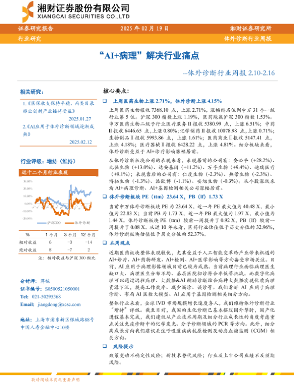 【湘财证券】【20250219】20250219-湘财证券-体外诊断行业周报:“AI+病理”解决行业痛点-11页 行业研究