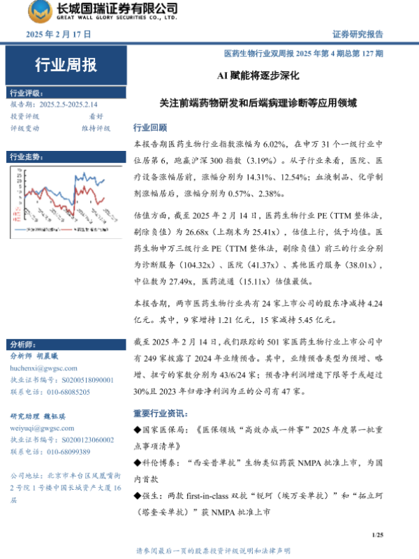 【长城国瑞证券】【20250217】AI赋能将逐步深化 关注前端药物研发和后端病理诊断等应用领域-25页 行业研究