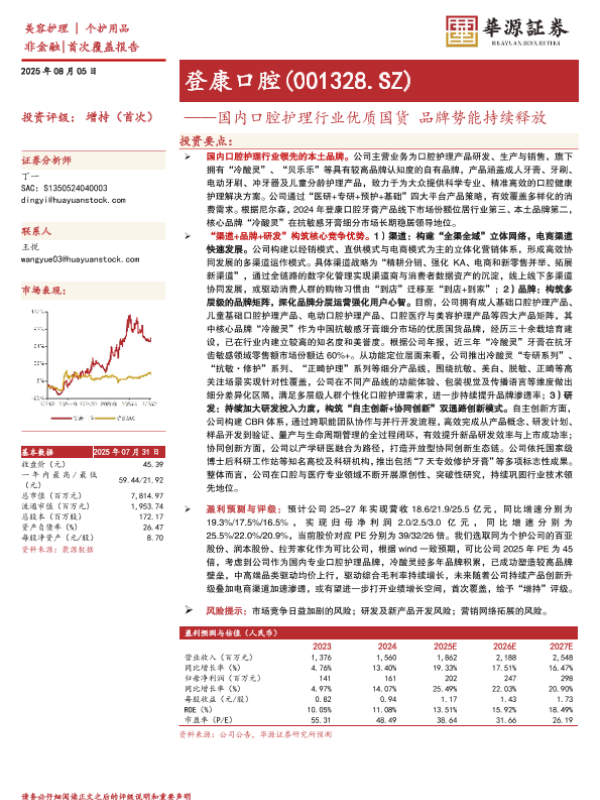 【华源证券】【20250805】登康口腔-国内口腔护理行业优质国货 品牌势能持续释放-15页 证券期货研究报告