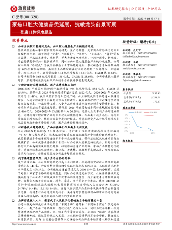 【浙商证券】【20230417】登康口腔深度报告:聚焦口腔大健康品类延展,抗敏龙头前景可期-32页 行业研究
