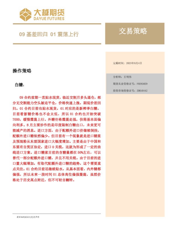 【大越期货】【20230904】交易策略:09基差回归,01震荡上行-16页 行业研究