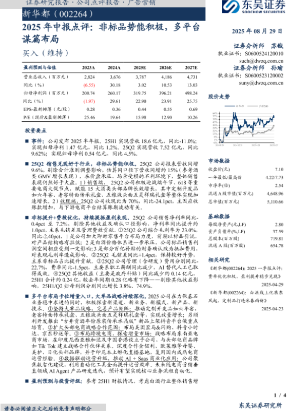 【东吴证券】【20250829】新华都-2025年中报点评:非标品势能积极,多平台谋篇布局-4页 证券期货研究报告