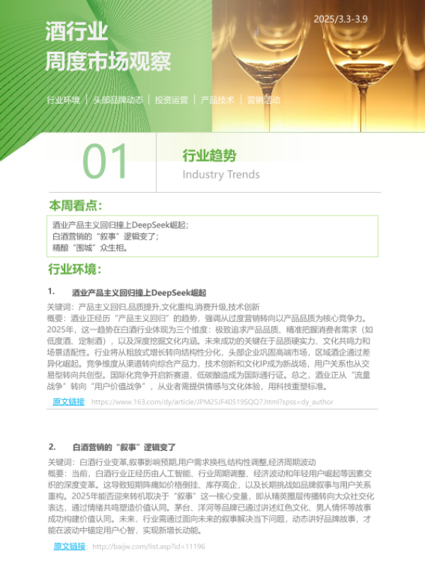 【艾瑞咨询】【202503】iR-2025年第11周-酒行业周度市场观察-5页 行业研究
