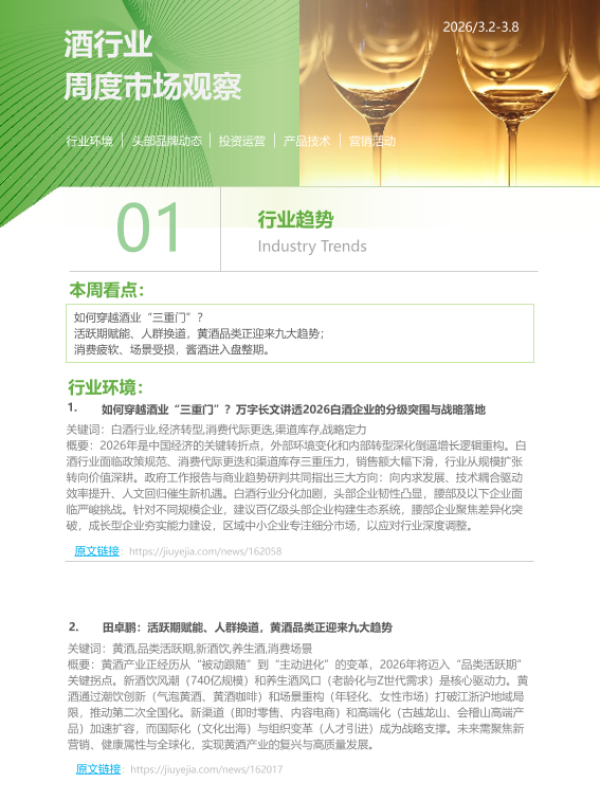 【艾瑞咨询】【202603】酒行业周度市场观察-7页 市场调研