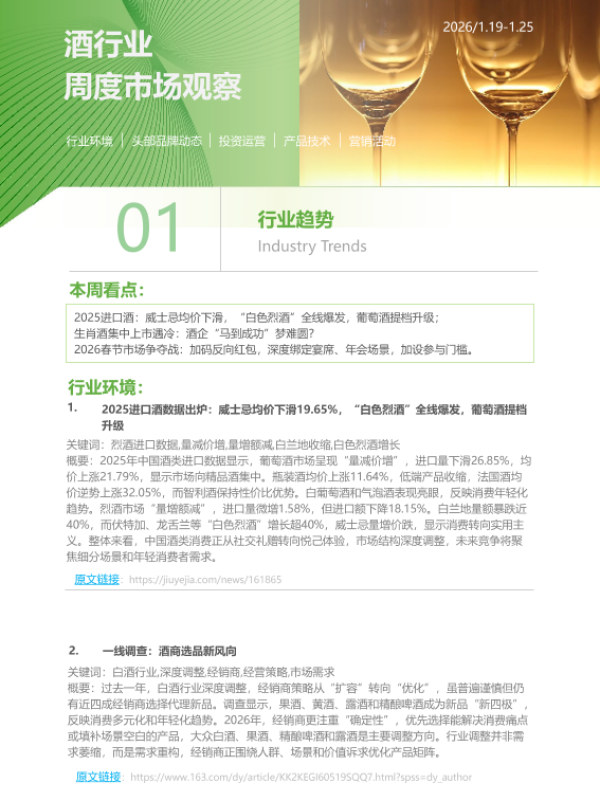 【艾瑞咨询】【202601】酒行业周度市场观察-8页 市场调研