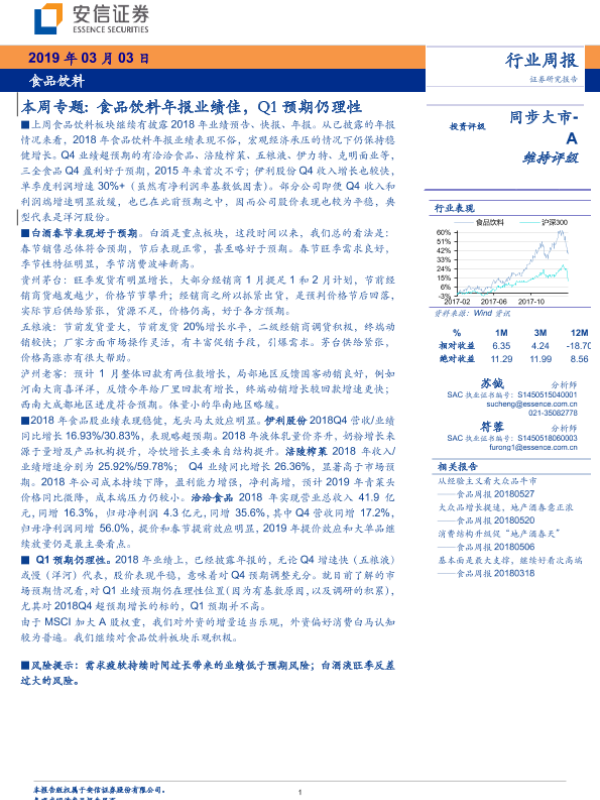 【安信证券】【20190303】食品饮料本周专题:食品饮料年报业绩佳,Q1预期仍理性-26页 行业研究